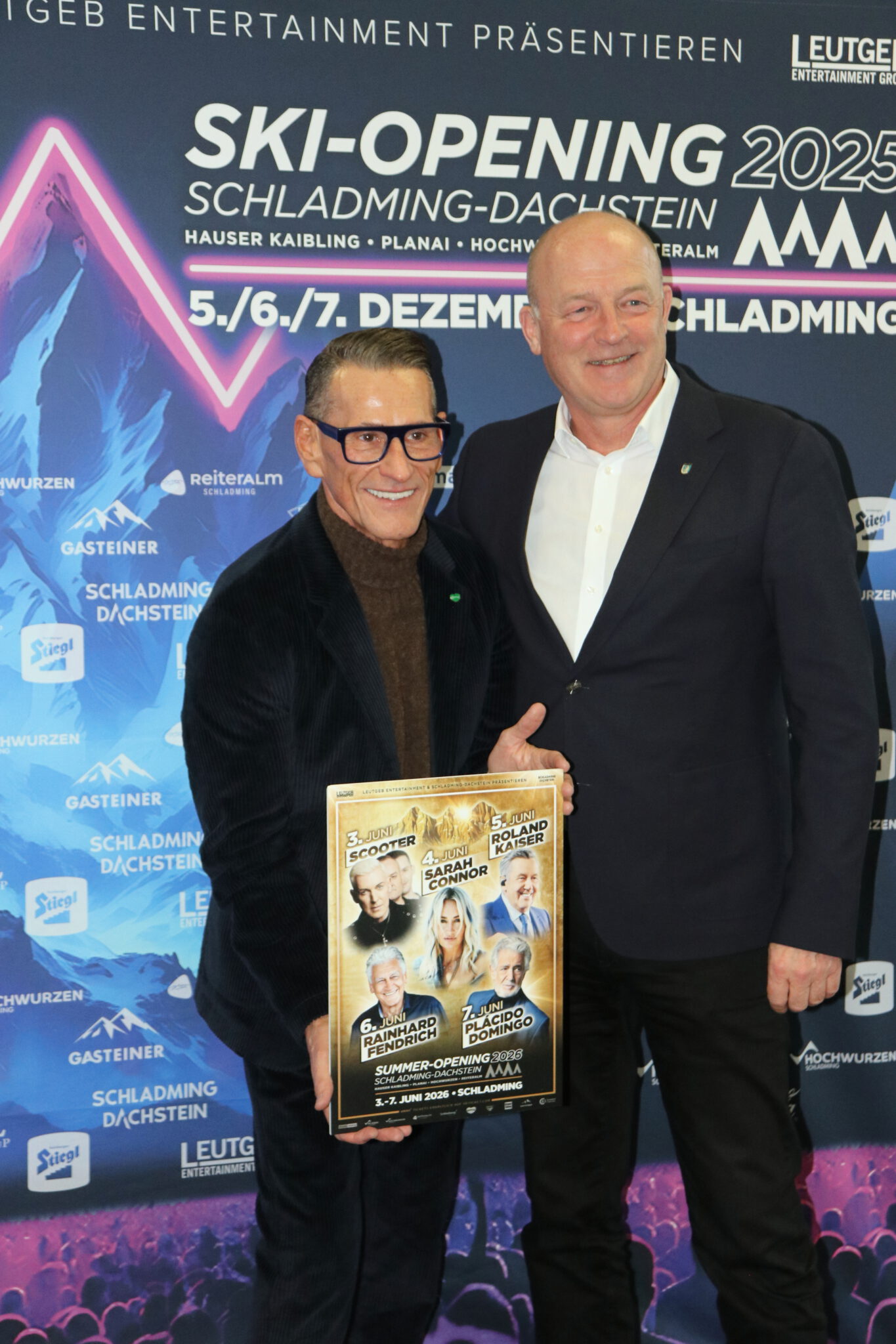 Schon vor dem Auftritt der Backstreet Boys am Abend im Planai Stadion herrscht in Schladming eine bestens gelaunte Atmosphäre. Veranstalter Klaus Leutgeb lädt nach der großen Pressekonferenz, in der das neue Summer-Opening Schladming-Dachstein 2026 vorgestellt wurde, zum exklusiven „Steirischen Get-together“ mit Ehrengast Mario Kunasek ein. Rund 200 weitere geladene Gäste aus Politik, Wirtschaft, Tourismus, Kultur und Sport folgen seiner Einladung ins Congress Schladming, um gemeinsam den Auftakt des größten Ski-Openings der bisherigen Geschichte zu feiern.